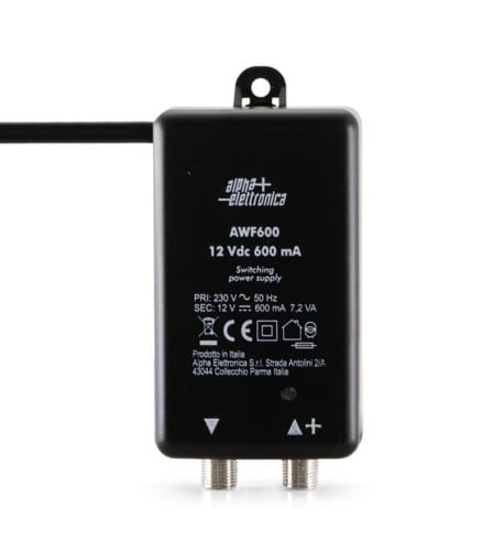 ALPHA ELETTRONICA - Alimentatore per amplificatore antenna - 12Vdc 600mA - Con connettori F AWF600