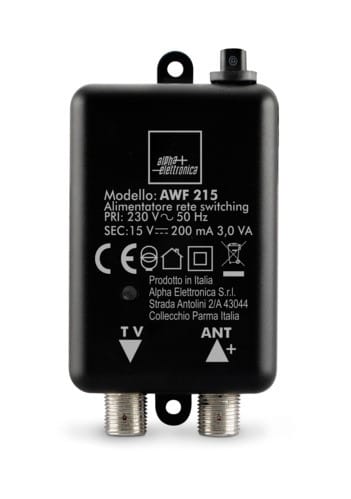 ALPHA ELETTRONICA - Alimentatore per amplificatore antenna - 15Vdc 200mA - Con connettori F AWF215