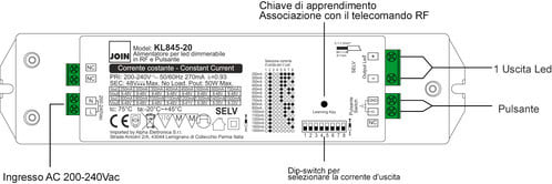 ALPHA ELETTRONICA - Alimentatore per LED a corrente costante 250-1500mA dip switch 50W 8-48V dimmerabile RF+pulsante KL845-20