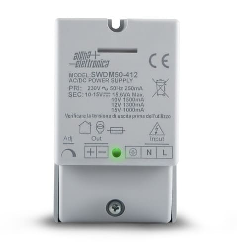 ALPHA ELETTRONICA - Alimentatore switching 15,6W - Uscita regolabile 10÷15Vdc 1,5A - Morsetti a vite SWDM50-412