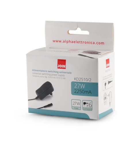 ALPHA ELETTRONICA - Alimentatore Switching 27W - 3-4,5/5/6/7,5/9/12Vdc 2,25A - 6 connettori KD2510/2