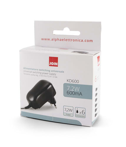 ALPHA ELETTRONICA - Alimentatore Switching 7,2W - 3/4,5/5/6/7,5/9/12 Vdc - 0,6A - 6 connettori KD600
