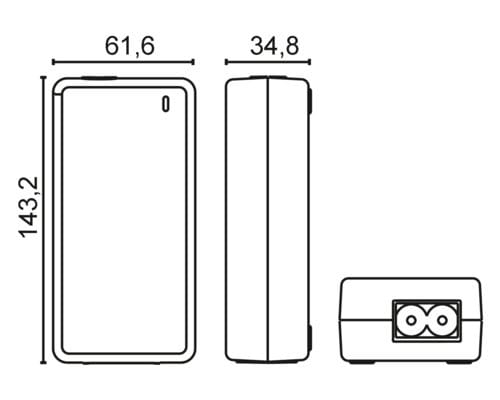 Dimensioni (LxWxH): 143.2 x 61.6 x 34.8mm
