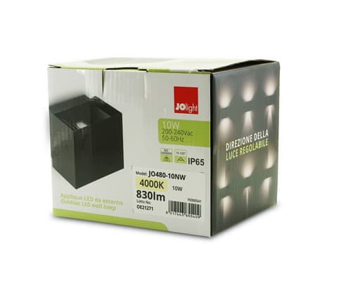 ALPHA ELETTRONICA - Applique Led 10W - 230Vac - Corpo nero - Bianco naturale - Serie Wall JO480-10NW