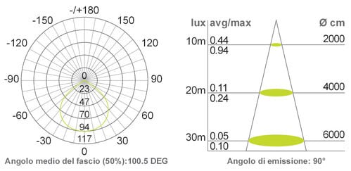 Angolo di emissione: 100°