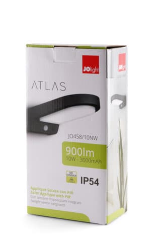 ALPHA ELETTRONICA - Applique solare a Led - 10W - Con sensore PIR - Bianco naturale - Serie Atlas JO458/10NW