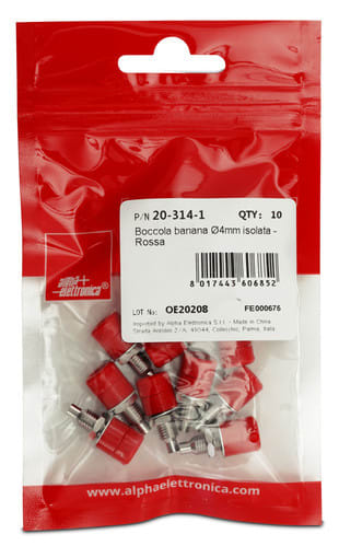 ALPHA ELETTRONICA - Boccola banana Ø4mm isolata - Rossa