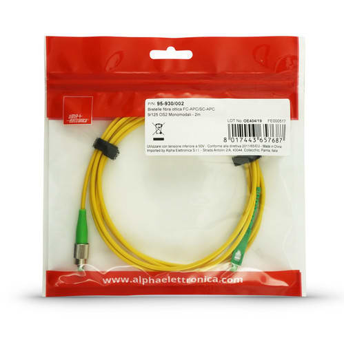 ALPHA ELETTRONICA - Bretelle fibra ottica FC-APC/SC-APC 9/125 OS2 Monomodali - 2m 95-930/002
