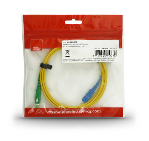 ALPHA ELETTRONICA - Bretelle fibra ottica SC-APC/SC-PC 9/125 OS2 Monomodali - 2m 95-928/002