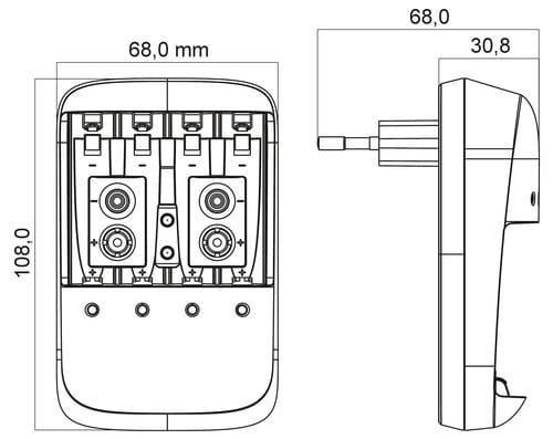 Caricabatteria adatto per caricare 1-4 celle AA, 1-4 celle AAA oppure 1-2 batterie 9V.