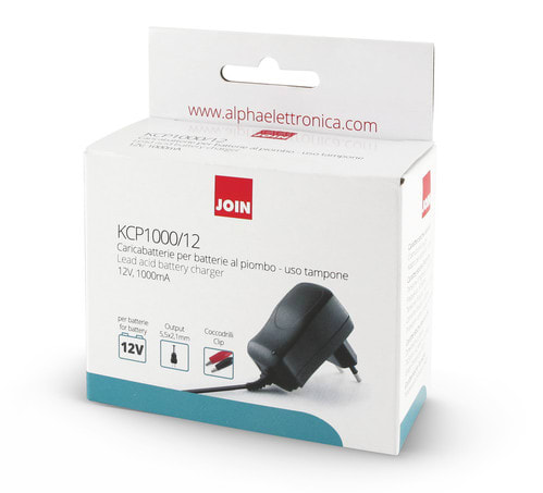 ALPHA ELETTRONICA - Carica batteria Piombo 12Vdc - 1000 mA - connettore 5,5x2,1mm e pinzette coccodrillo KCP1000/12