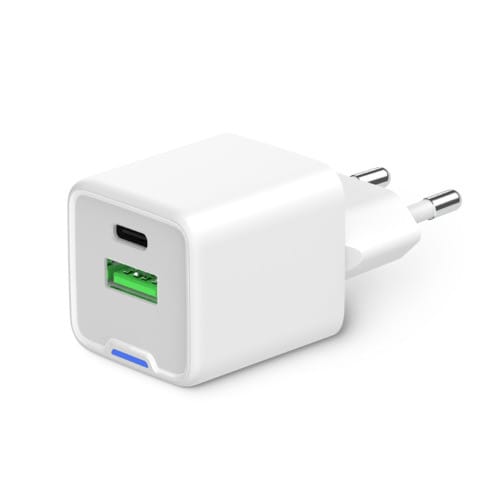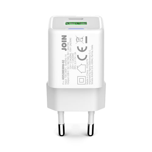 ALPHA ELETTRONICA - Caricatore 2 USB 1C e 1A - GaN 30W Power Delivery - Bianco KD530030W-02
