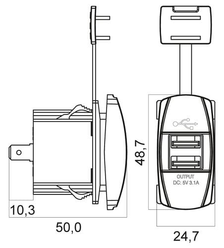 ALPHA ELETTRONICA - Caricatore con due uscite USB tipo "A"- 5Vdc 3,1A Max. - Ingresso 12-28V KR172