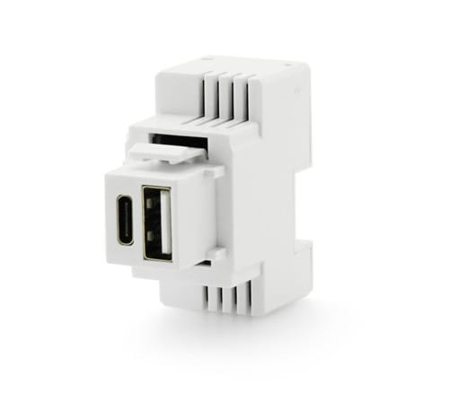 Alimentatore da incasso compatto per serie civili.