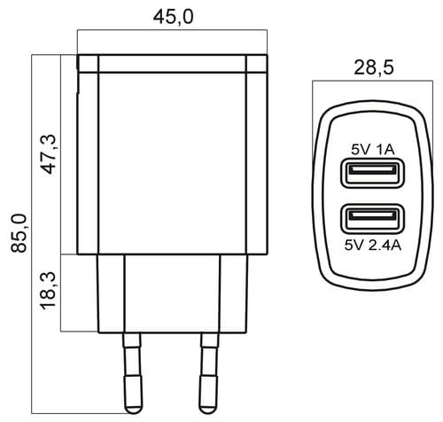 ALPHA ELETTRONICA - Caricatore USB 17W - 2 porte 5V 2,1A (max totale 3,4A) - Bianco KD503/2B