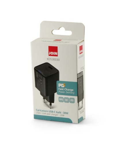 ALPHA ELETTRONICA - Caricatore USB C - GaN 30W Power Delivery - Nero KD530030