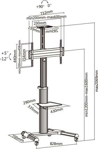 ALPHA ELETTRONICA - Carrello telescopico porta TV/monitor , 37"-70" - con mensola SU3770/50