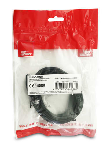 ALPHA ELETTRONICA - Cavo da presa jack Ø3,5mm Stereo a spina jack Ø3,5mm Stereo - 5m 11-3-011LB
