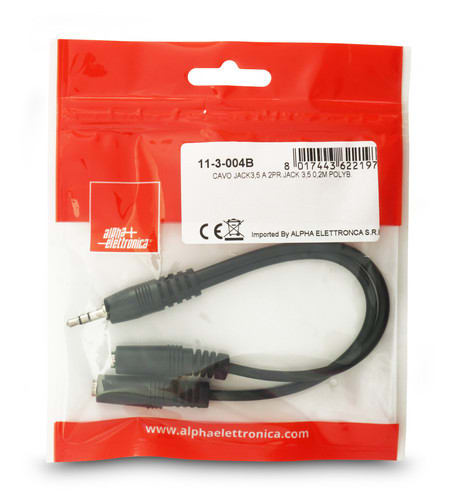 ALPHA ELETTRONICA - Cavo da spina jack ø3,5 Stereo a 2 prese jack ø3,5 Stereo - 0,2m