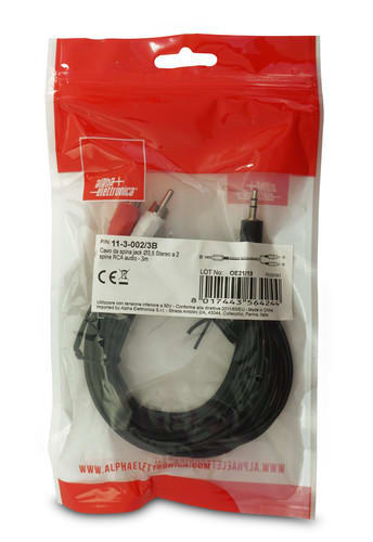 ALPHA ELETTRONICA - Cavo da spina jack Ø3,5 Stereo a 2 spine RCA audio - 3m 11-3-002/3B