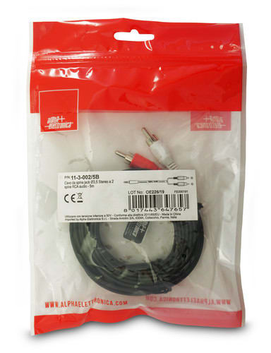 ALPHA ELETTRONICA - Cavo da spina jack Ø3,5 Stereo a 2 spine RCA audio - 5m 11-3-002/5B