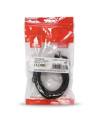 ALPHA ELETTRONICA - Cavo da spina TV Coax Ø9,5mm a presa 90° TV Coax Ø9,5mm - Con adattatore M/M - Nero - 2m 87-014/02B