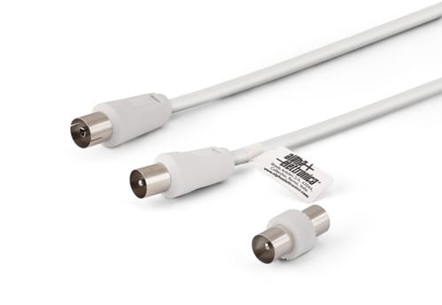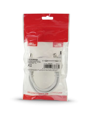 ALPHA ELETTRONICA - Cavo da spina TV Coax Ø9,5mm a presa TV Coax Ø9,5mm - Con adattatore M/M - Bianco - 2m 87-012W/02B
