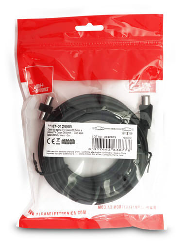 ALPHA ELETTRONICA - Cavo da spina TV Coax Ø9,5mm a presa TV Coax Ø9,5mm - Con adattatore M/M - Nero - 5m