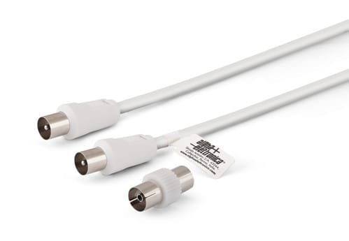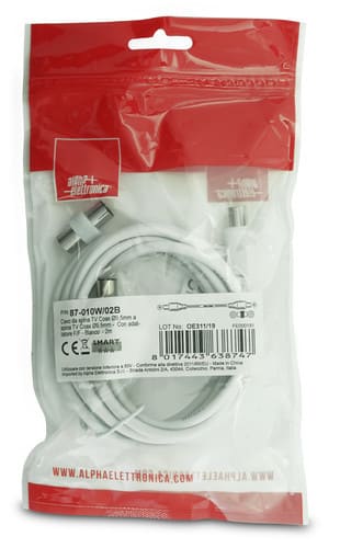 ALPHA ELETTRONICA - Cavo da spina TV Coax Ø9,5mm a spina TV Coax Ø9,5mm - Con adattatore F/F - Bianco - 2m