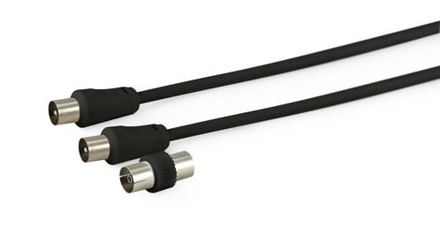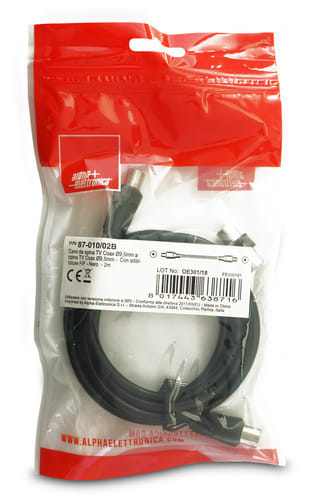 ALPHA ELETTRONICA - Cavo da spina TV Coax Ø9,5mm a spina TV Coax Ø9,5mm - Con adattatore F/F - Nero - 2m 87-010/02B