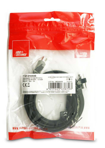 ALPHA ELETTRONICA - Cavo da spina TV Coax Ø9,5mm a spina TV Coax Ø9,5mm - Con adattatore F/F - Nero - 3m 87-010/03B