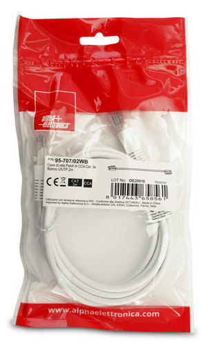 ALPHA ELETTRONICA - Cavo di rete Patch in CCA Cat. 5e Bianco U/UTP 2m 95-707/02WB