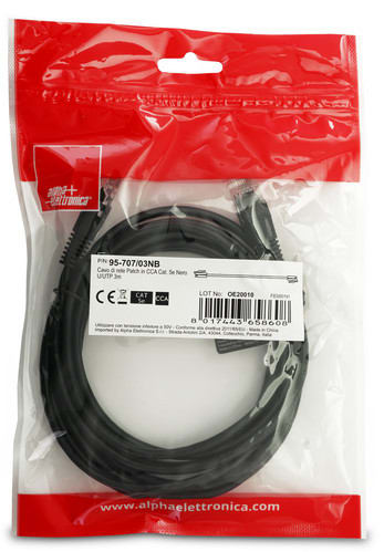 ALPHA ELETTRONICA - Cavo di rete Patch in CCA Cat. 5e Nero U/UTP 3m 95-707/03NB
