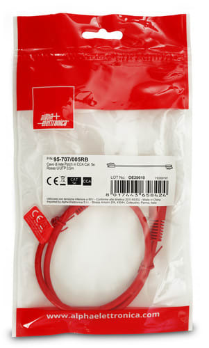 ALPHA ELETTRONICA - Cavo di rete Patch in CCA Cat. 5e Rosso U/UTP 0,5m 95-707/005RB