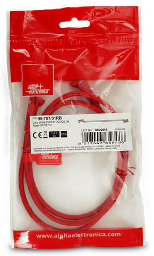 ALPHA ELETTRONICA - Cavo di rete Patch in CCA Cat. 5e Rosso U/UTP 1m 95-707/01RB