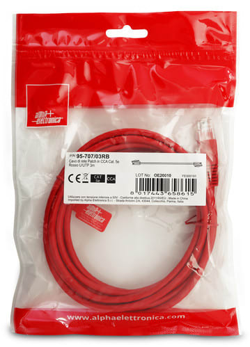 ALPHA ELETTRONICA - Cavo di rete Patch in CCA Cat. 5e Rosso U/UTP 3m 95-707/03RB