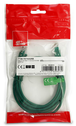 ALPHA ELETTRONICA - Cavo di rete Patch in CCA Cat. 5e Verde U/UTP 2m 95-707/02GRB