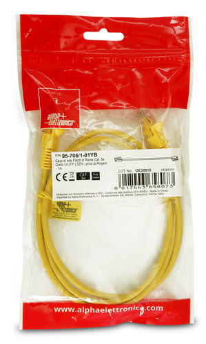 ALPHA ELETTRONICA - Cavo di rete Patch in Rame Cat. 5e Giallo U/UTP, LSZH - privo di Alogeni - 1m 95-706/1-01YB