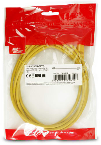 ALPHA ELETTRONICA - Cavo di rete Patch in Rame Cat. 5e Giallo U/UTP, LSZH - privo di Alogeni - 2m 95-706/1-02YB
