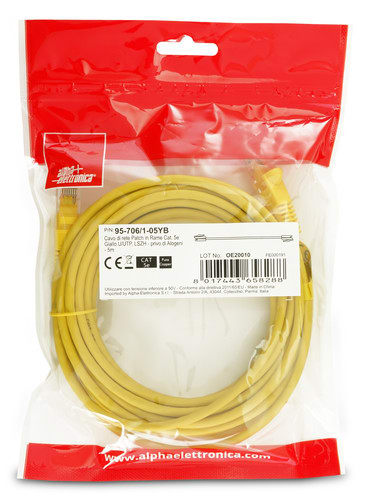 ALPHA ELETTRONICA - Cavo di rete Patch in Rame Cat. 5e Giallo U/UTP, LSZH - privo di Alogeni - 5m 95-706/1-05YB