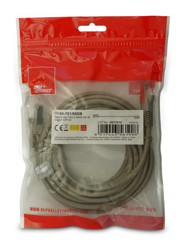 ALPHA ELETTRONICA - Cavo di rete Patch in Rame Cat. 5e Grigio F/UTP 5m