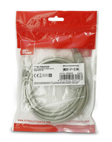 ALPHA ELETTRONICA - Cavo di rete Patch in Rame Cat. 5e Grigio U/UTP 3m 95-706/03GB