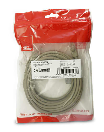 ALPHA ELETTRONICA - Cavo di rete Patch in Rame Cat. 5e Grigio U/UTP 5m 95-706/05GB