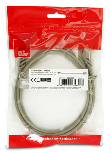 ALPHA ELETTRONICA - Cavo di rete Patch in Rame Cat. 5e Grigio U/UTP, LSZH - privo di Alogeni - 2m 95-706/1-02GB