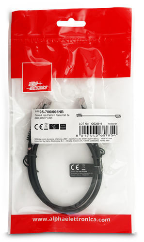 ALPHA ELETTRONICA - Cavo di rete Patch in Rame Cat. 5e Nero U/UTP 0,5m 95-706/005NB