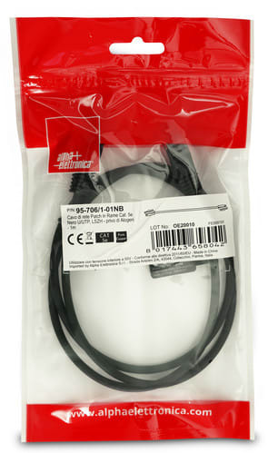 ALPHA ELETTRONICA - Cavo di rete Patch in Rame Cat. 5e Nero U/UTP, LSZH - privo di Alogeni - 1m