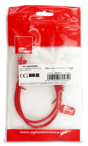 ALPHA ELETTRONICA - Cavo di rete Patch in Rame Cat. 5e Rosso U/UTP 0,5m