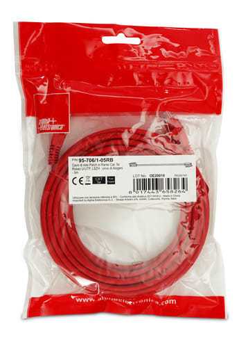 ALPHA ELETTRONICA - Cavo di rete Patch in Rame Cat. 5e Rosso U/UTP, LSZH - privo di Alogeni - 5m