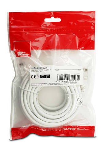 ALPHA ELETTRONICA - Cavo di rete Patch in Rame Cat. 6 Bianco U/UTP 5m 95-708/05WB