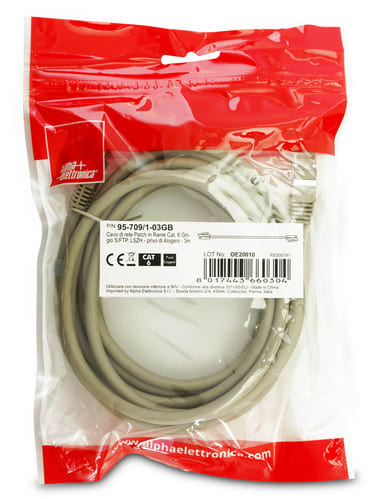 ALPHA ELETTRONICA - Cavo di rete Patch in Rame Cat. 6 Grigio S/FTP, LSZH - privo di Alogeni - 3m 95-709/1-03GB